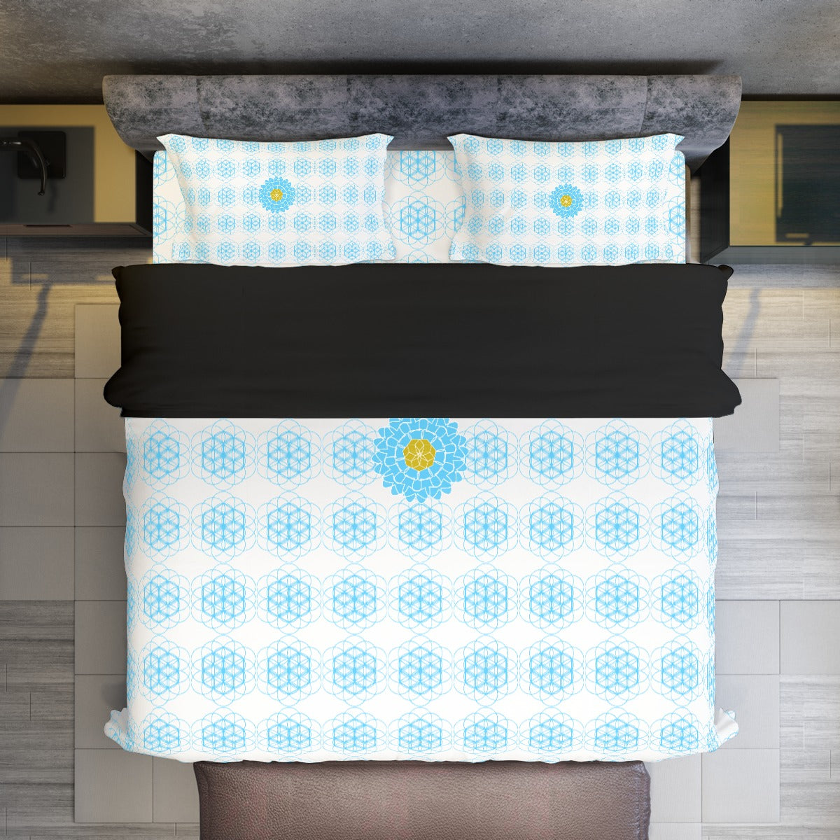Before using the bed for healing or sleep, place your right or left hand on the lotus flower geometry on the center of the quilt and breathe in and out fully at least 5 times as your living prana is used as the power source to enhance and amplify the Prana Bed. Do the same for any other additonal items that you may have for the Prana Bed (e.g. - Duvet Cover, sheet and pillow cases).