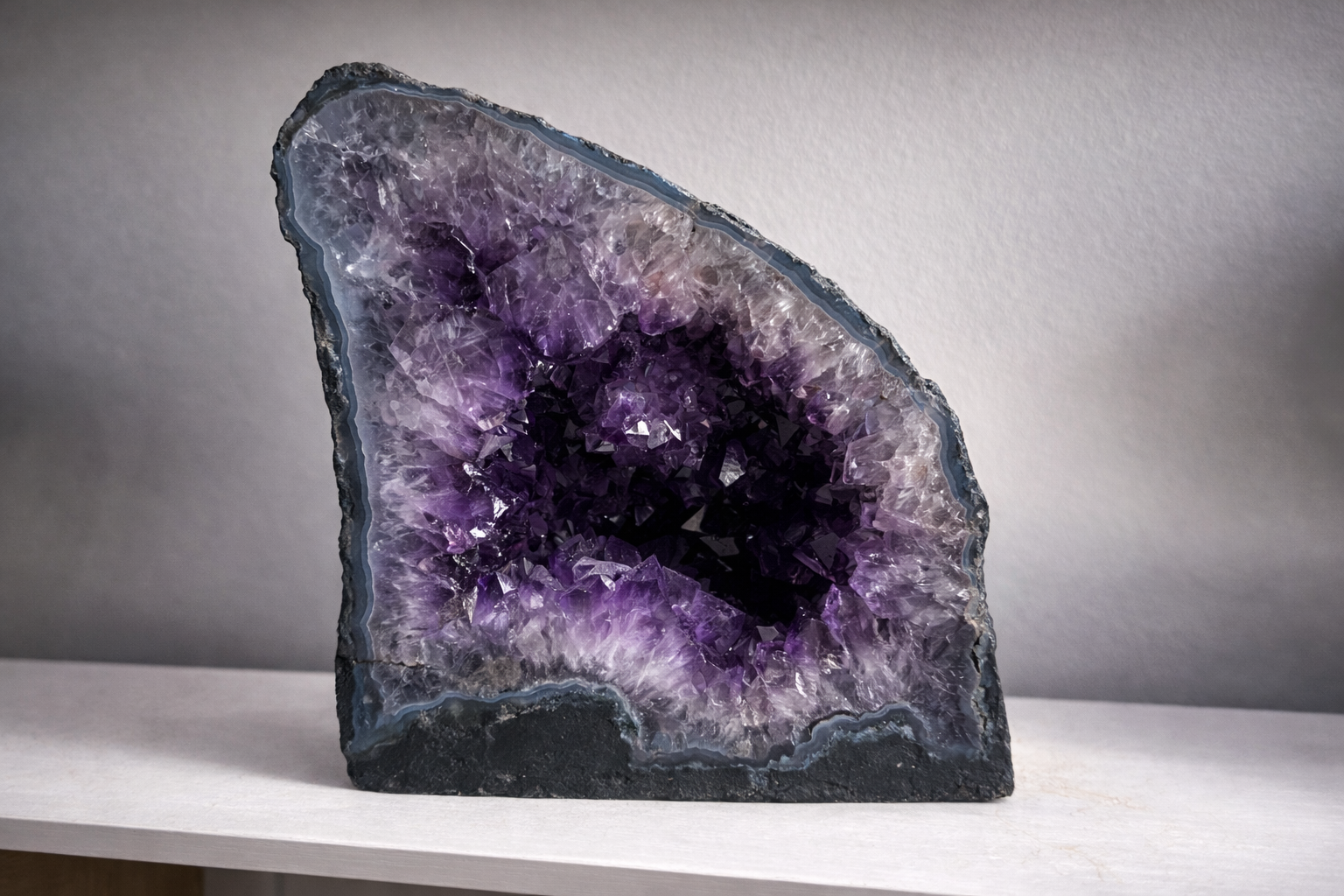 - Formation: Natural Amethyst Geode (angled profile)